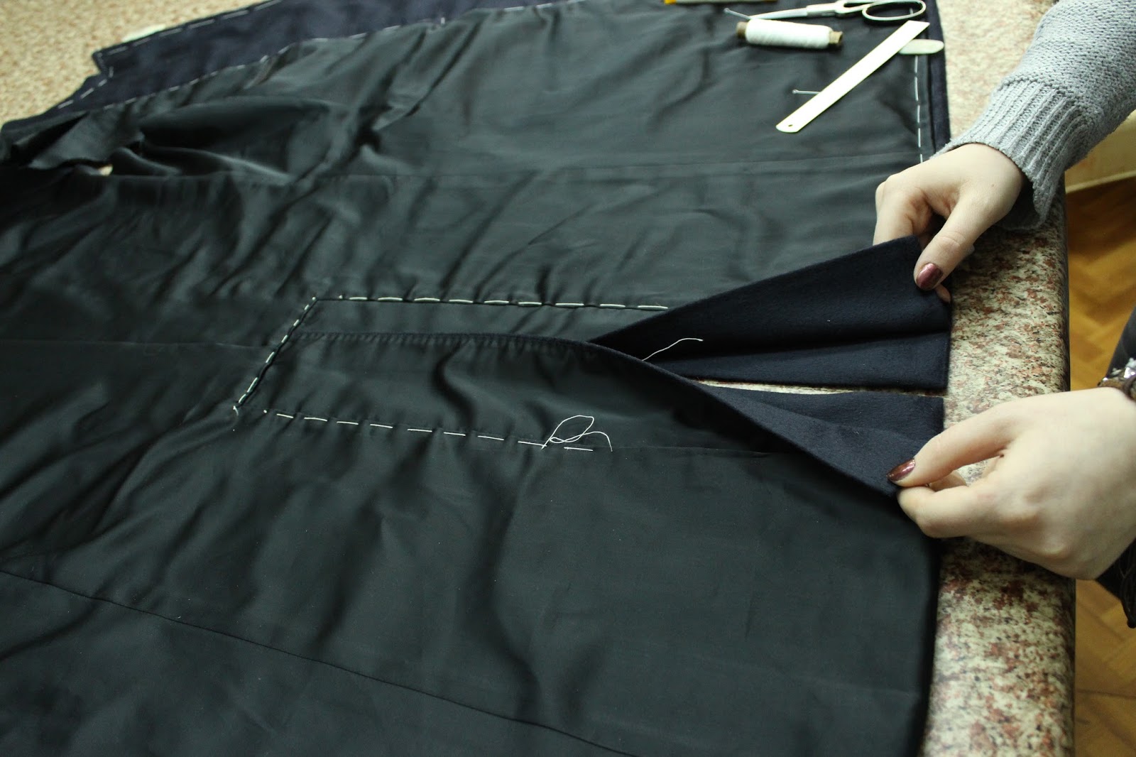 Обрабатываем шлицу в мужском пальто-поло